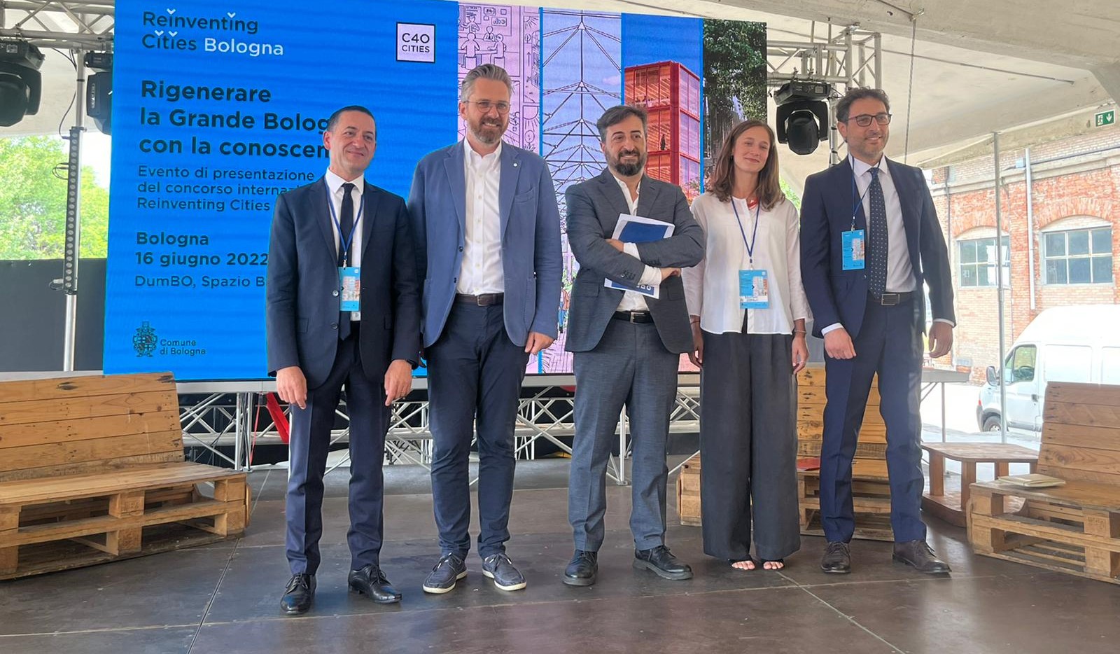 Alla conferenza di presentazione hanno partecipato il Sindaco Matteo Lepore, Raffaele Laudani, Assessore Urbanistica e progetto "Città della conoscenza e memoria democratica" Comune di Bologna, Costanza de Stefani, C40 Reinventing Cities, Stefano Brugnara, Amministratore Unico ASP, Giusella Finocchiaro, Presidente Fondazione del Monte di Bologna e Ravenna Giovanni Molari, Rettore Università di Bologna.
