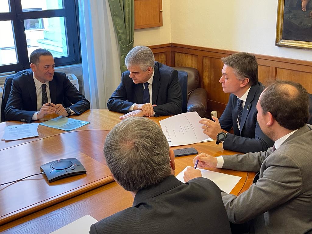 Sottoscritto oggi il Protocollo d’Intesa per la realizzazione di un nuovo parcheggio multipiano interrato adiacente la stazione ferroviaria di Santa Margherita Ligure. A firmare l'accordo presso il Ministero delle Infrastrutture e dei Trasporti Umberto Lebruto, Amministratore Delegato di FS Sistemi Urbani (Gruppo FS Italiane) delegato da Metropark, e Paolo Donadoni, Sindaco di Santa Margherita Ligure, alla presenza dell’Amministratore Delegato del Gruppo FS Italiane Luigi Ferraris e del Viceministro Infrastrutture e Trasporti Onorevole Edoardo Rixi.